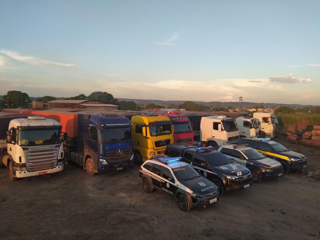 Ação de fiscalização resulta na apreensão de 10 caminhões carregados de madeira