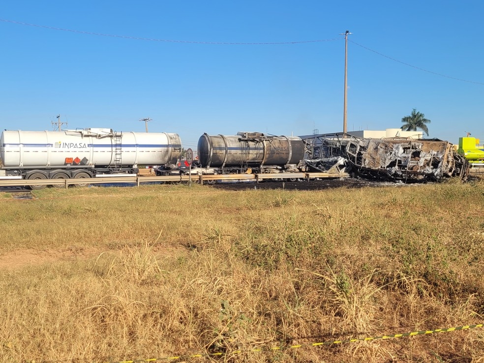 Um vídeo mostra os veículos em chamas após as batida. (assista acima)
