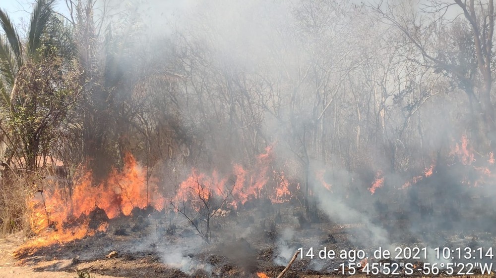 Uma equipe de 32 soldados do Corpo de Bombeiros de Mato Grosso (CBMMT) continua a operação para controlar um incêndio em vegetação no Morro de Santo Antônio, perto da rodovia MT-040, distante 27 km de Cuiabá.