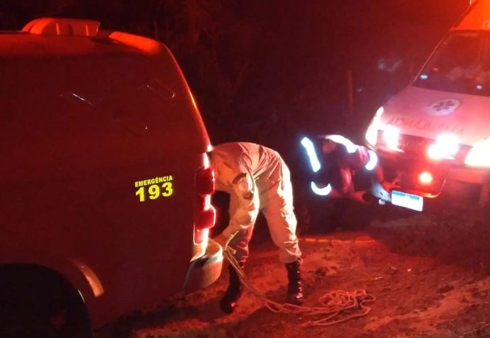Uma equipe do Corpo de Bombeiros deu apoio para desatolar o veículo da saúde. Na primeira tentativa, a corda usada para puxar o Samu arrebentou e foi necessário buscar outro equipamento mais resistente.