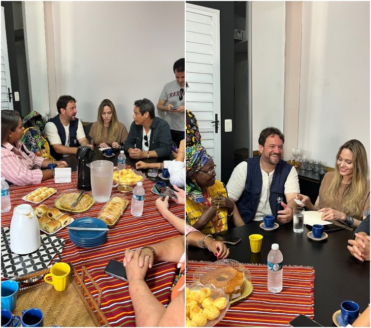 “Angelina ouviu atentamente histórias de mulheres refugiadas e compartilhou experiências. Uma honra conhecer uma pessoa tão generosa e realmente empenhada em causas humanitárias”, declarou a deputada estadual Thainara Faria (PT), que estava presente no local, ao publicar no Instagram um registro ao lado da estrela do cinema americano.
