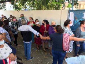 Moradores precisaram improvisar um “cordão humano” para separar quem tinha chegado primeiro, daqueles que chegaram por último. O trânsito ficou congestionado e teve aglomeração.