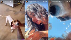 “Olha quem apareceu aqui essa manhã e não vai embora. Já demos comida, é muito carinhosa. Está cheia de pulga, normal. É menina do mato, da fazenda, da ‘cachu’”, disse a modelo, nos stories do Instagram. Na sequência, ela informou que pretende adotar o pet e que já deu nome à pequena: Happy (“Feliz”, em inglês”). Veja: