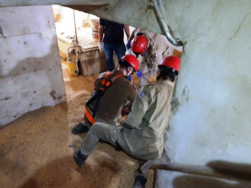 Devido à grande quantidade de soja derramada, os elevadores do equipamento não estavam operando, o que dificultou o resgate. Diante disso, os militares precisaram abrir um acesso na tubulação de metal para iniciar a remoção dos grãos.