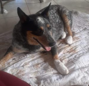 “No meio da estrada ele chamou e ela veio. Chegando aqui nós vimos que estava as patinhas dela estavam assadas. Fizemos o curativo, passamos pomadas e aplicamos o remédio. Agora ela está descansando”, relata.