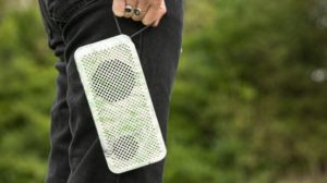 A Gomi Speaker é uma caixa de som portátil que aposta na sustentabilidade. O produto é feito de materiais reaproveitados, trazendo estrutura de plástico retirado do oceano. A bateria tem 20 horas de duração e é 100% reciclada, obtida a partir de componentes descartados de bicicletas elétricas. São 25 Watts RMS de potência, um número parecido com o que é oferecido por produtos tradicionais como a Charge 4, da JBL que chega com 30 Watts RMS.