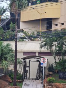 A traseira do carro atingido e o portão do condomínio às margens da avenida ficaram destruídos. A Rodando Legal informou que está providenciando o ressarcimento das avarias e prejuízos ocorridos.