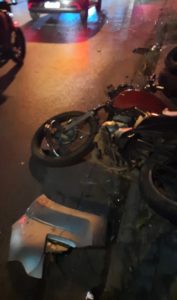 Com o impacto da colisão com a moto, a caminhonete acabou invadindo a calçada, atingindo a vítima que estava sentada no local junto com outras pessoas.