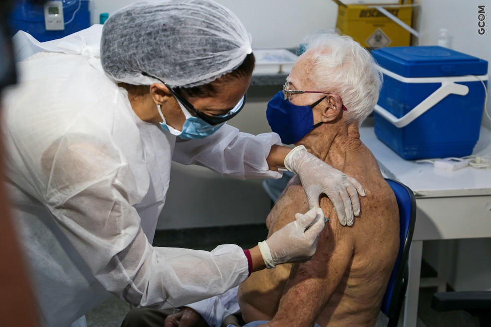 Nesta terça-feira, está sendo aplicada a segunda dose da Coronavac em idosos acima de 66 anos e trabalhadores da saúde.