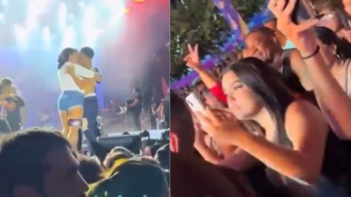 Depois do beijo, a namorada anunciou o fim do relacionamento, enquanto ele se desculpava no palco.