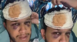 Na publicação ele aparece com uma faixa na cabeça e com hematomas nos dois olhos. O cantor sinalizou que sofreu um grande corte da parte de trás da cabeça até a testa.