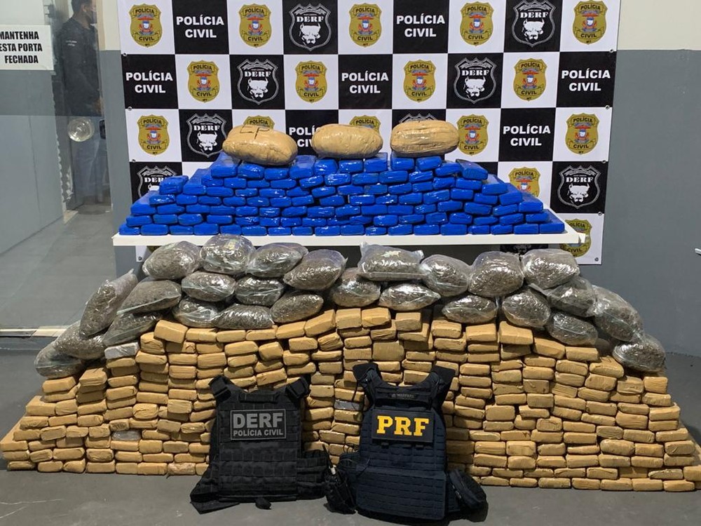 Um casal foi preso com 400 kg de maconha ao ser abordado na noite deste domingo (27) em uma operação conjunta entre a Polícia Rodoviária Federal (PRF) e a Polícia Civil na BR 163, município de Rondonópolis.
