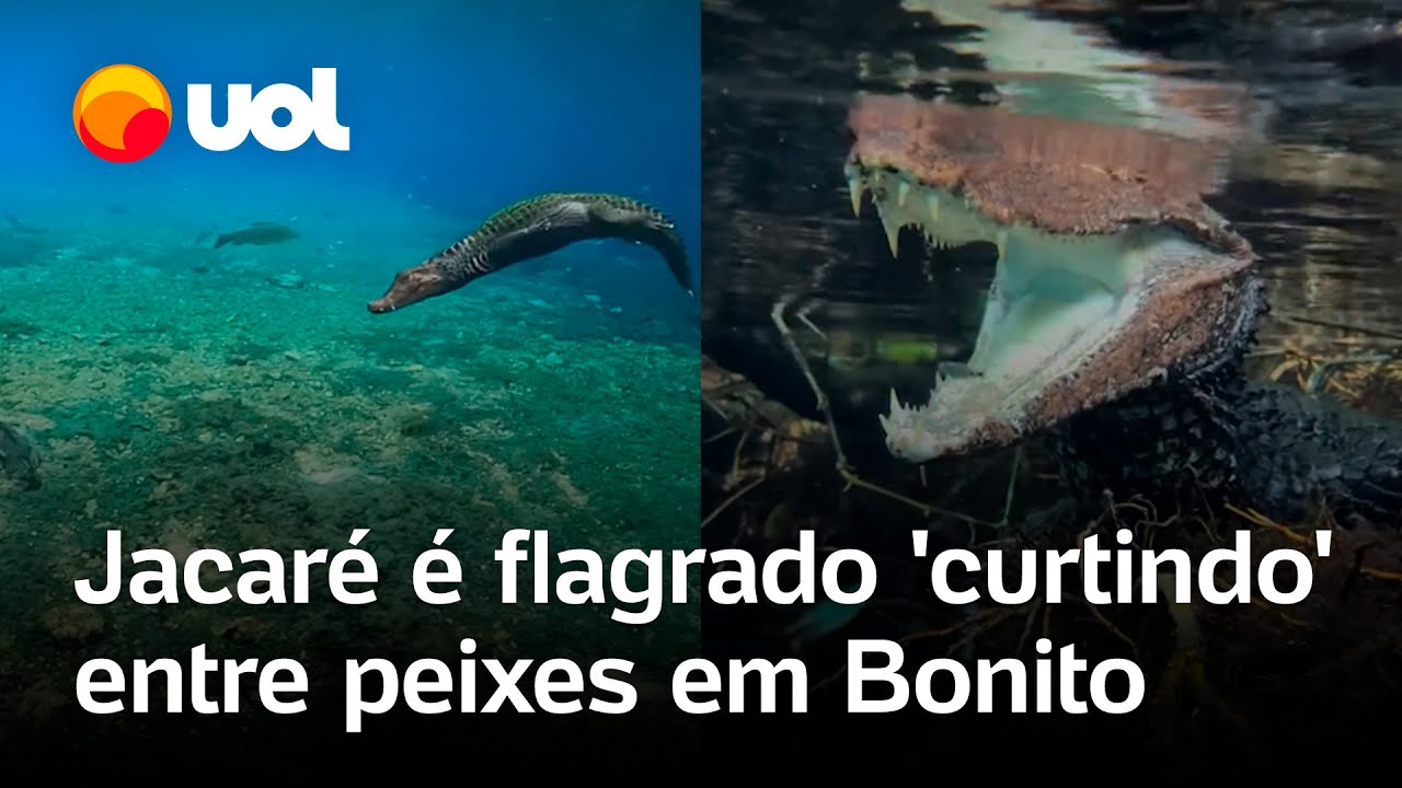 Jacaré é flagrado ‘curtindo’ e nadando entre peixes em Bonito, no Mato Grosso do Sul