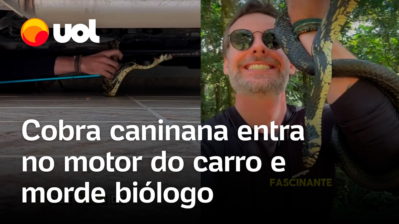 Cobra caninana de 2 metros morde biólogo e tenta entrar no motor de carro em SC
