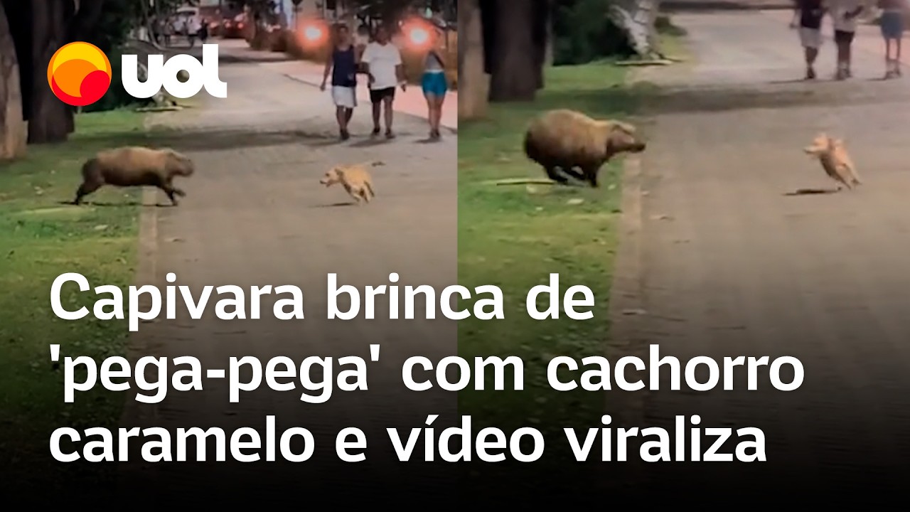 Capivara e cachorro caramelo fazem amizade e são flagrados brincando de ‘pega-pega’ em Colatina