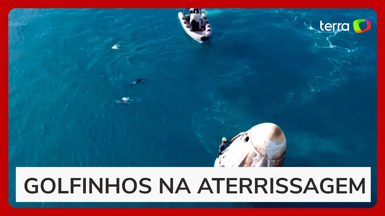 Golfinhos ‘recepcionam’ chegada de astronautas na costa da Flórida