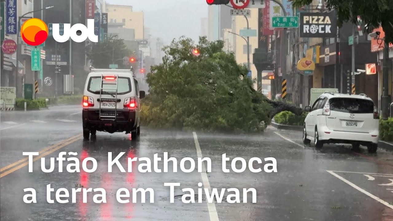 Tufão Krathon chega nas cidades em Taiwan com rajadas de mais de 162 km/h; veja vídeos