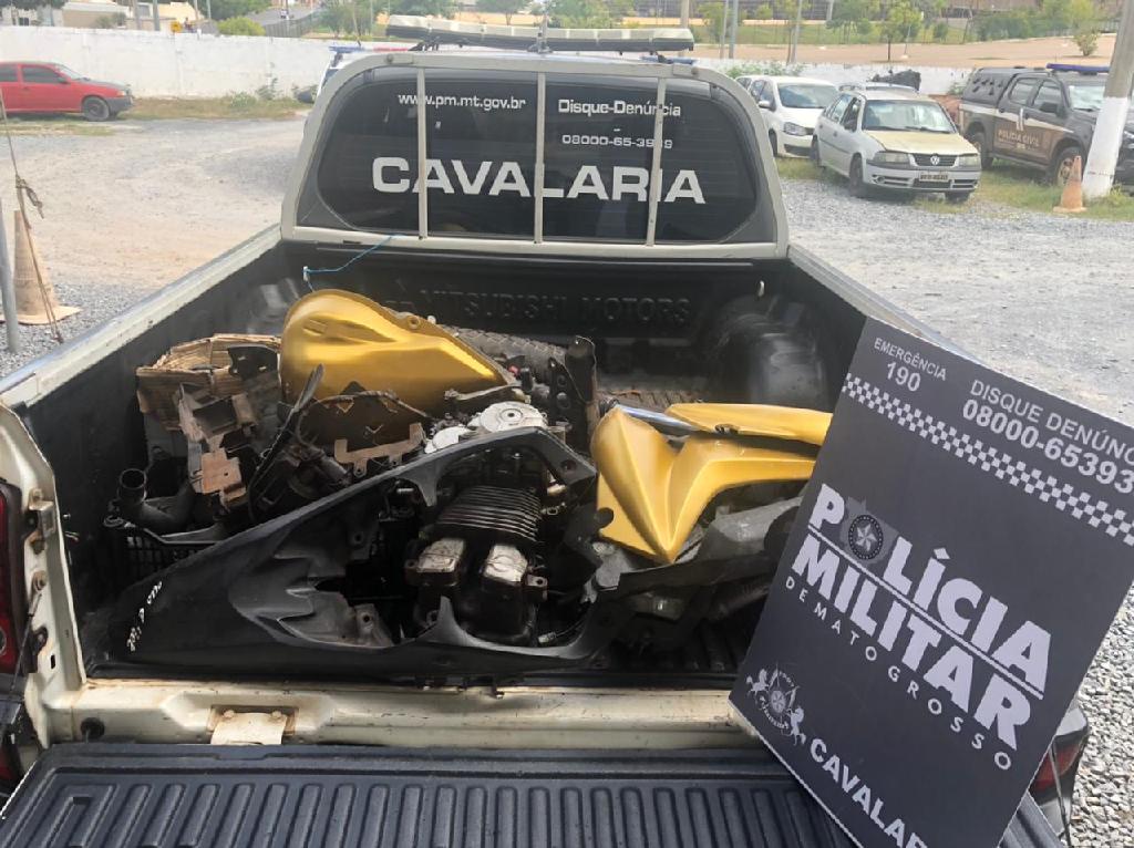 Policiais da Cavalaria fecharam uma borracharia utilizada como desmanche de motocicletas roubadas, na terça- feira(27), em Cuiabá. Na ação, a Polícia Militar prendeu três homens (19,21 e 35 anos) e apreendeu uma motocicleta XRE-300 e diversas peças de veículos adulterados.