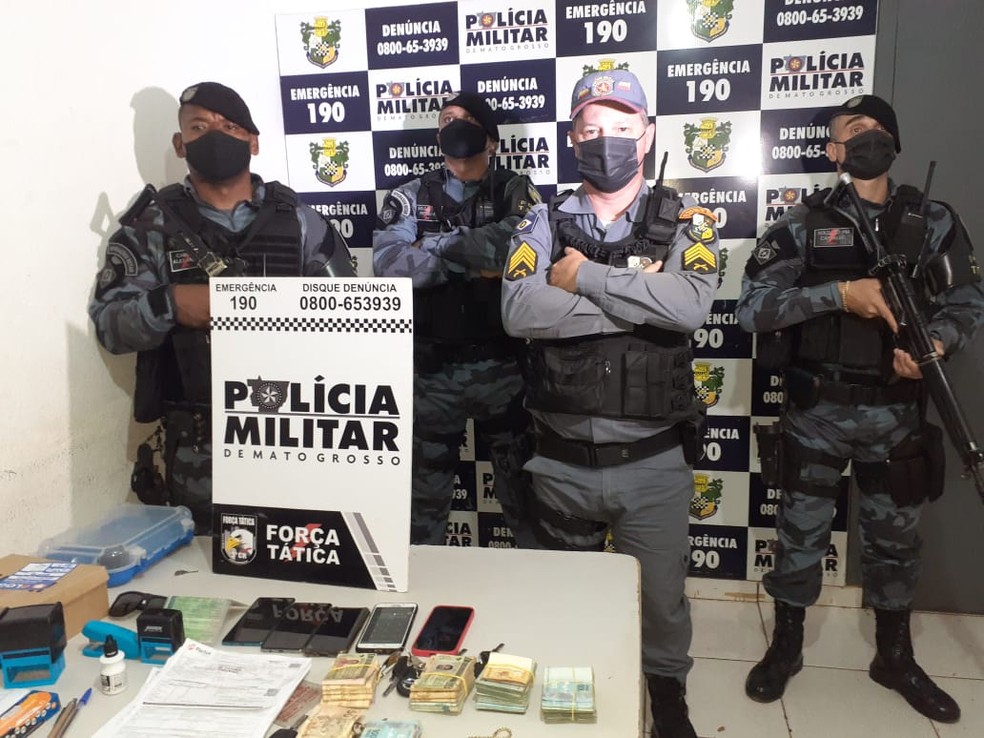 Cinco homens suspeitos de desvio de cargas de grãos foram presos em Sorriso, no norte do estado, nesse sábado (24). Na operação, também foram apreendidos R$ 30 mil e três carretas.
