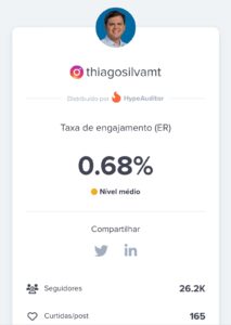 Um levantamento feito pelo medidor Hype que levou em consideração as últimas publicações no perfil do Instagram realizado no ultima semana do mês de setembro apontou uma taxa de engajamento de 4,0% fazendo com que o perfil tenha o maior engajamento entre todos os candidatos de Rondonópolis. Os candidatos adversários registraram taxa de engajamento de 1.79% Paulo José e 0.68% Thiago Silva.