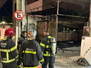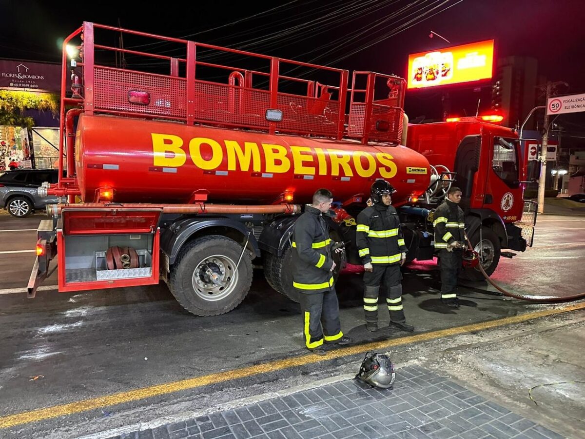 Corpo de Bombeiros extingue incêndio em pastelaria no centro de Cuiabá