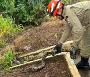 Durante o resgate, os bombeiros realizaram a captura manual da cobra e, em seguida, a transportaram para uma área de mata, onde foi solta em seu habitat natural.