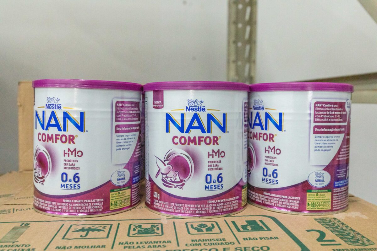 São oferecidas latas de leites das marcas “Nan Confor”, “Pedia Sure”, “Trophic Basic Enteral”, “Infantrini Isosource Junior” e “Neocate LCP”.