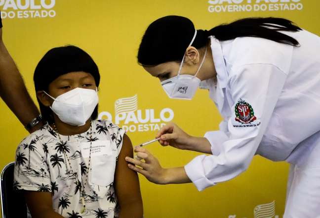 SÃO PAULO – O menino indígena Davi, da etnia Xavante de 8 anos, foi a primeira criança a ser vacinada contra a covid-19 no Estado de São Paulo. O governo paulista realiza na tarde desta sexta-feira, 14, uma cerimônia para marcar o início da campanha para a faixa etária de 5 a 11 anos. A aplicação para o público-alvo em geral, no entanto, só está prevista para começar na capital paulista na próxima segunda-feira, 17.