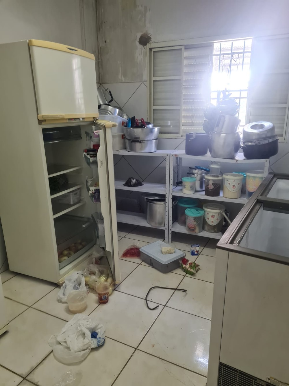 A presidente disse que ela e os funcionários chegaram no local por volta de 7h e a porta que dá acesso à cozinha e o refeitório estava quebrada.