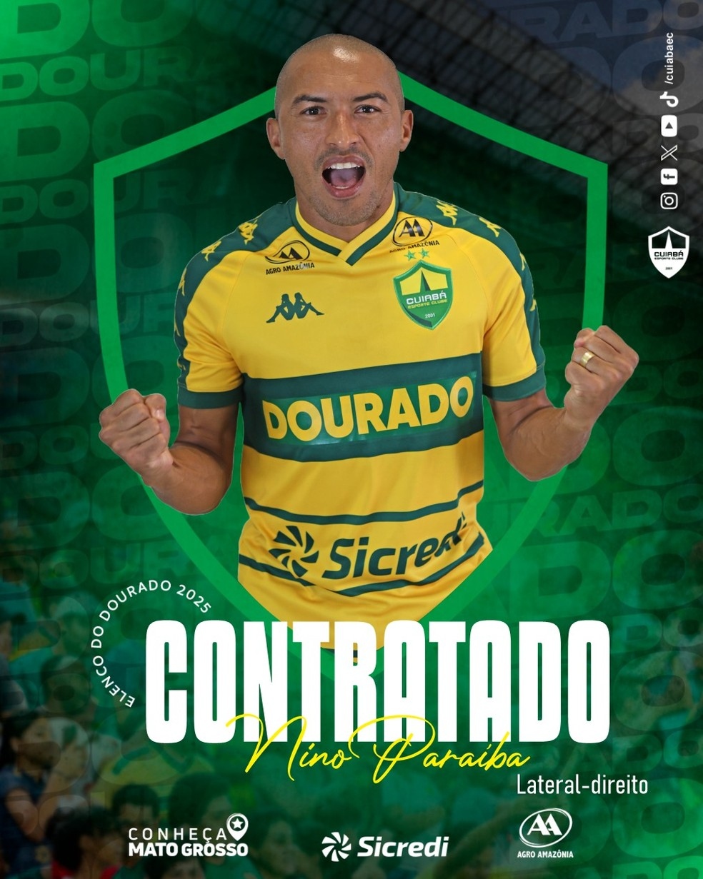 O Cuiabá oficializou neste sábado, a contratação do lateral-direito Nino Paraíba, de 39 anos.