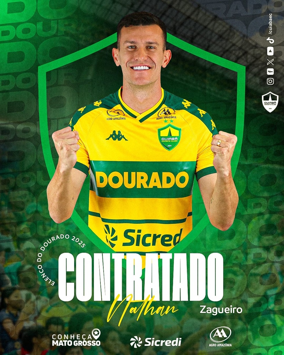 Nathan que também pode atuar como volante, tem passagens pelas seleções de base do Brasil. O zagueiro chega como opção para a defesa ao longo das disputas do Campeonato Mato-grossense, da Série B do Campeonato Brasileiro e da Copa do Brasil.