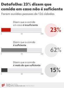 A pesquisa Datafolha publicada no site do jornal “Folha de S.Paulo” nesta terça-feira (4) aponta que 23% dos brasileiros dizem que não têm comida suficiente em casa.