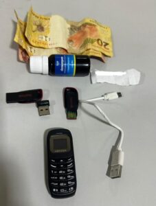 Ainda na mesma tarde, uma reeducanda que realizava trabalho extramuros foi flagrada tentando retornar à unidade com um mini celular, um carregador, três pendrives, um frasco de remédio e R$ 50 em espécie. Um boletim de ocorrência foi registrado, e o caso será investigado.