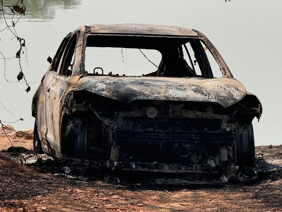 Os policiais foram acionados e, ao chegar no local, desceram até a beira do rio, onde encontraram o carro e os corpos carbonizados.