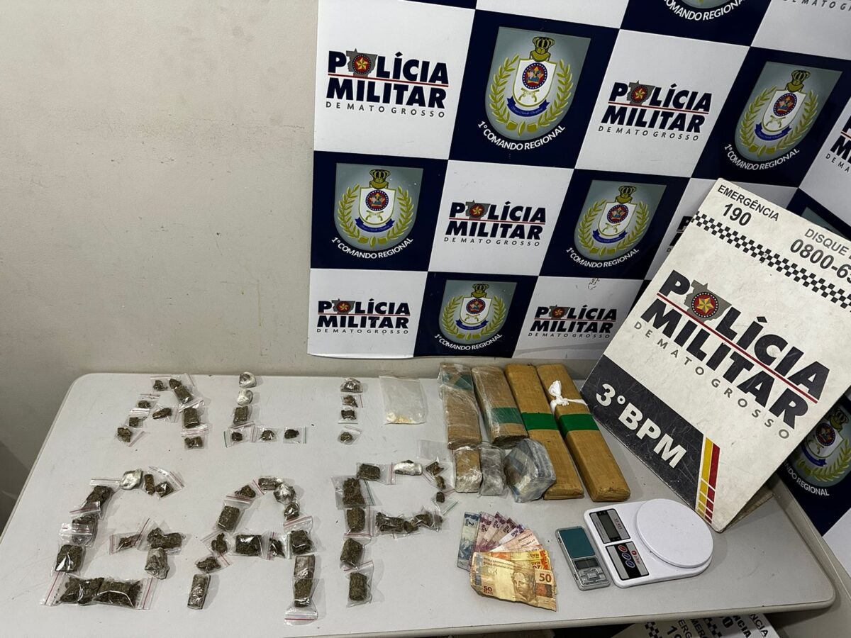 Policiais militares do 3º Batalhão prenderam em flagrante dois homens, de 39 e 41 anos, por tráfico de drogas, na tarde desta quarta-feira (15.05), em Cuiabá. Com a dupla, foram apreendidos quatro tabletes e 200 porções de substâncias análogas a maconha.