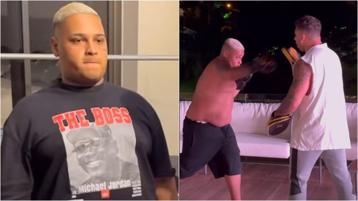 Nos treinos de boxe, Ryan brincou: “Tô me achando o popô”.