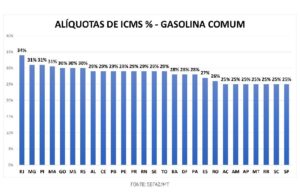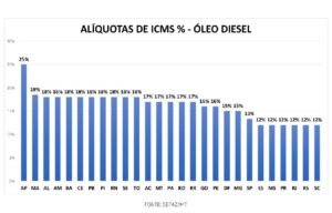 Levantamento da Sefaz aponta que Mato Grosso está entre os sete Estados com menor alíquota de ICMS da gasolina (25%). Já para o óleo diesel, a alíquota de 17% está na média dos demais entes da federação.