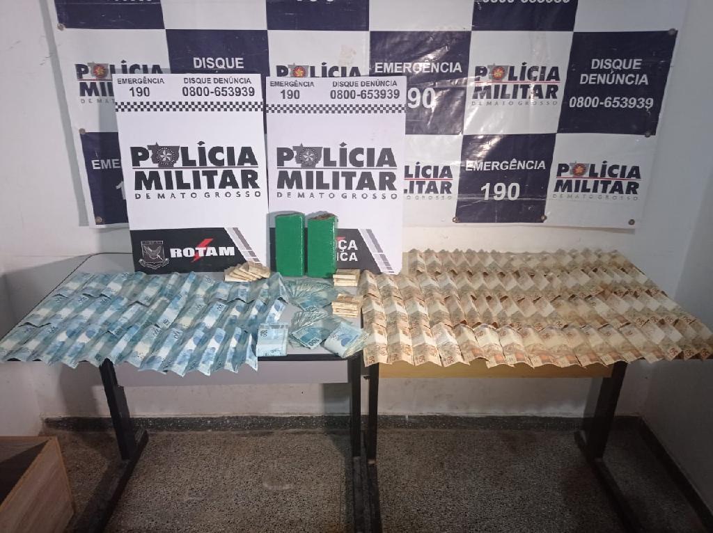 Os policiais abordaram o condutor do veículo e localizaram a quantia de R$ 35 mil espécie no porta-luvas e dois tabletes de maconha escondidos debaixo do estepe no porta-malas do carro. O suspeito confessou que era responsável pela distribuição de drogas na região e que o dinheiro seria de outro homem que mora no bairro Pedra 90.