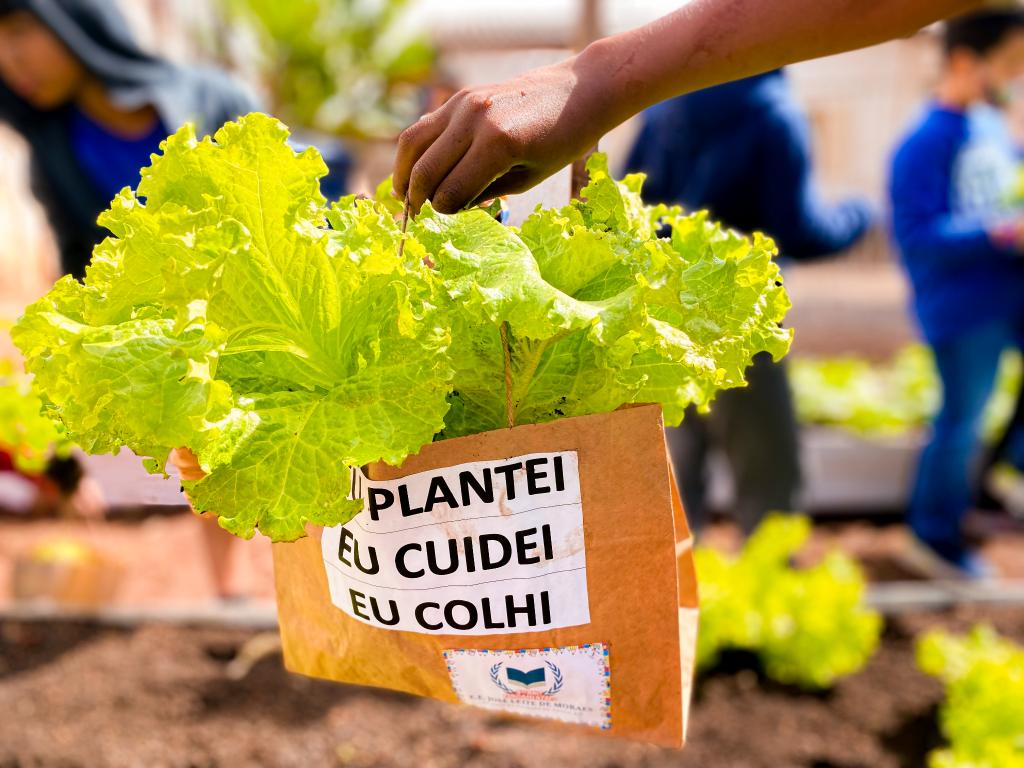 Segundo o diretor da escola, Marcos Fausto, a escolha do que plantar tem muita relação com o tempo que as plantas levam para crescer, para que não haja tanta espera para as crianças menores. Cebolinha e coentro são utilizados na própria merenda. Eles cultivam também alface, rúcula e couve. A produção atende à demanda da escola e também vai para a casa das crianças. Na última colheita, mais de 100 alunos foram beneficiados.