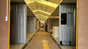 A estrutura provisória do Shopping Popular de Cuiabá foi inaugurada neste sábado (14), no estacionamento do local. O espaço conta 600 bancas, distribuídas em 216 contêineres, cada um com três bancas.