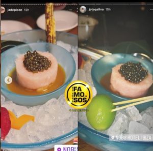 Nos Stories do Instagram, o casal compartilhou registros de passeios em iates, além de outras locações e da culinária local, assim como Jade que fez os mesmos posts do herdeiro de Fausto Silva.