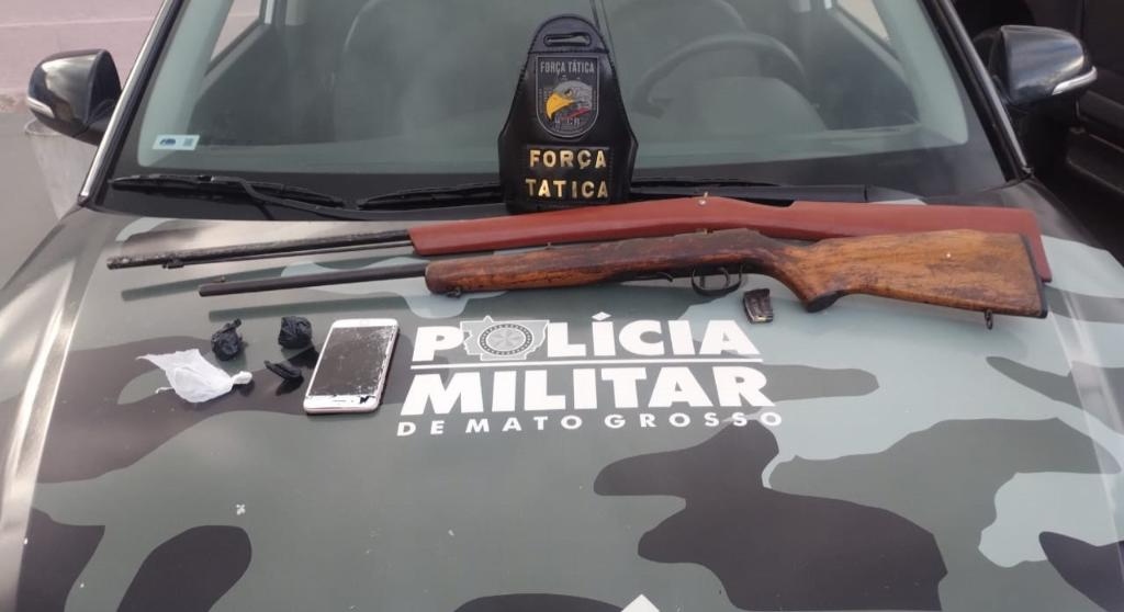 Na ação, foram apreendidas uma espingarda calibre 22, uma espingarda de pressão, quatro porções de cocaína e duas de maconha. As equipes ainda recuperaram uma motocicleta com registro de furto, no último dia 27, em Mineiros, no Estado de Goiás.