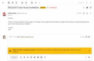 O recurso é uma etiqueta em amarelo chamada “External”, que avisa quando o email foi enviado por uma pessoa que está fora da sua rede corporativa ou nem sequer consta na lista de contatos. Dessa forma, o ideal é ter cuidado ao passar informações ou clicar em links enviados na mensagem.