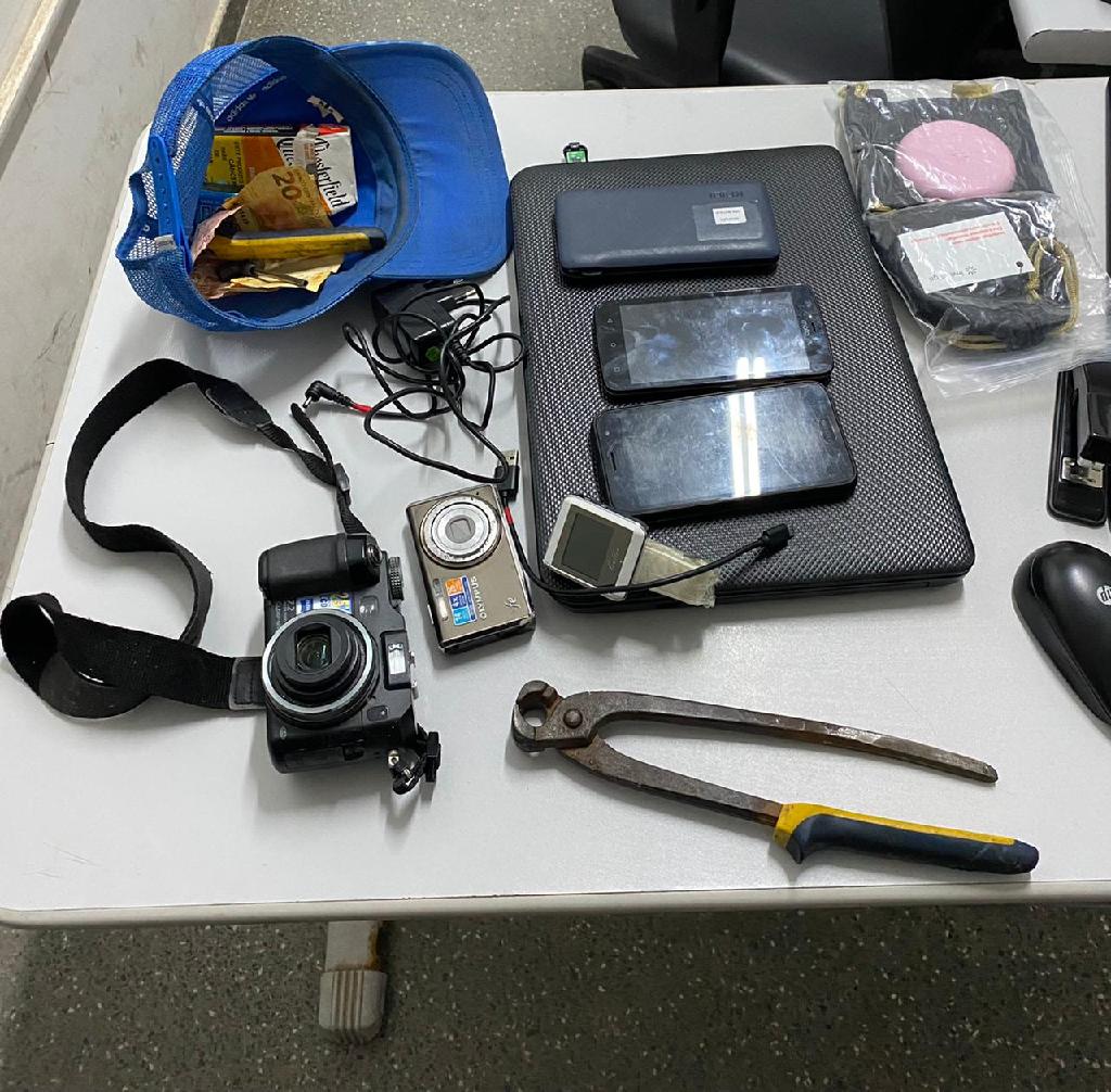 A testemunha apontou a direção que o suspeito havia tomado e de imediato localizou o homem após rondas pela região do bairro. Com o homem, a PM apreendeu as mochilas contendo diversos pertences da clínica odontológica, como notebook, celulares, alicate, dentre outros objetos.