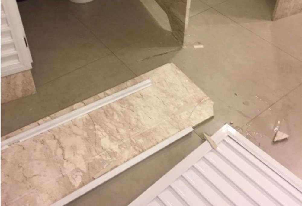 Segundo Juliana, a divisória de mármore teria peso superior a 100 quilos e caiu e esmagou o pé direito dela, de acordo com o processo.