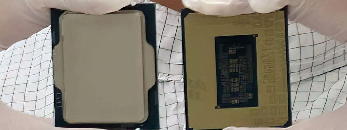 Apesar de a companhia já ter revelado algumas renderizações do que é esperado, essa é a primeira imagem oficial do processador. Na foto, uma engenheira da Intel segura e apresenta os dois lados do chip Alder Lake.