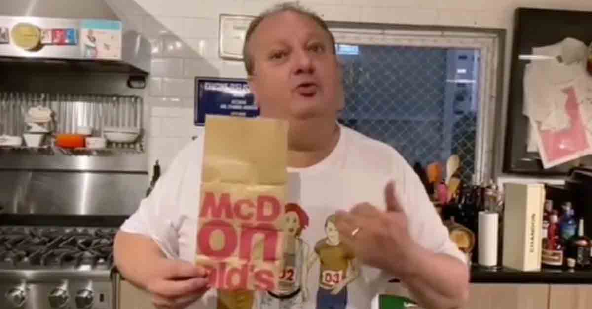 “Acabei de fazer um pedido para entregar na minha casa desse lugar que é muito conhecido, o fastfood mais conhecido do mundo. Chegou o sanduíche colado com o sorvete: sanduíche frio e sorvete derretido”, relatou o chef.