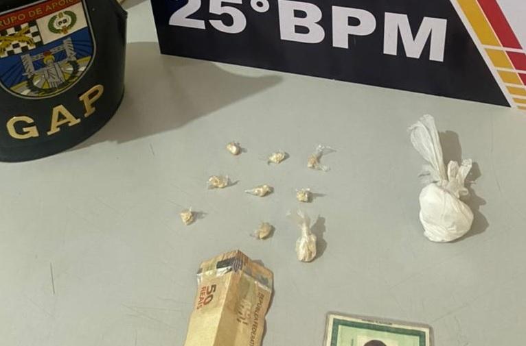 Uma equipe do Grupo de apoio (Gap) do 25º BPM prendeu na tarde desta quinta-feira (05.08), uma jovem de 19 anos, por tráfico de droga, no bairro Maringá I, em Várzea Grande. Foram tiradas de circulação nove porções de pasta base, uma porção de ácido bórico e dinheiro.