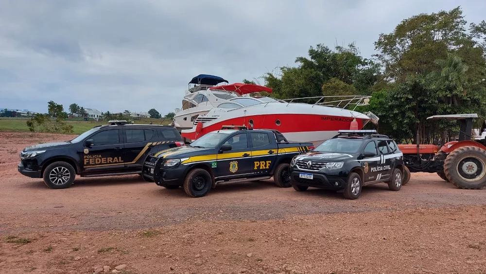 Uma lancha de grande porte apreendida durante a Operação Mandatário, em janeiro deste ano, foi transferida para a Marinha do Brasil nesta segunda-feira (6), após uma força-tarefa da Polícia Federal, Polícia Rodoviária Federal, Polícia Civil e Polícia Militar.