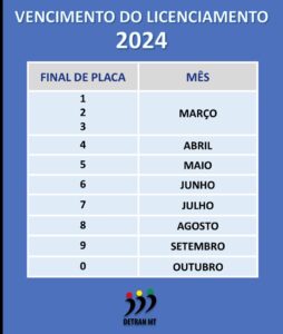O Departamento Estadual de Trânsito de Mato Grosso (Detran-MT) orienta os proprietários de veículos com placa final 7 a pagarem o licenciamento até o dia 31 de julho.